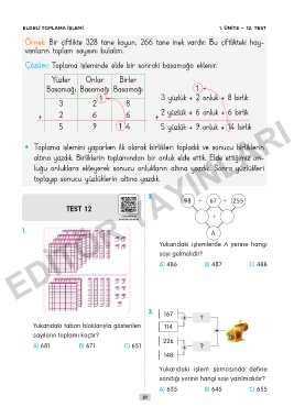 ELDELİ TOPLAMA İŞLEMİ 1. ÜNİTE – 12. TEST