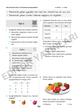 MEVSİMLERE ÖZGÜ YİYECEKLERLE BESLENİRİM 3. ÜNİTE – 3. TEST