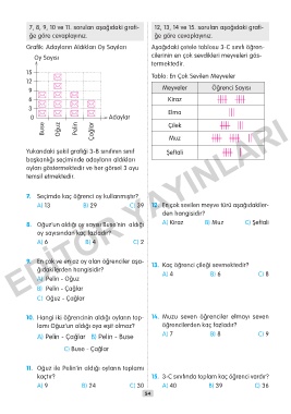 9. En çok ve en az oy alan öğrenciler aşa- 13. Kaç öğrenci çileği sevmektedir?