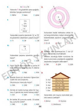 ile gösterilen rakamların çarpımı kaçtır? bölümlerdeki sayıların çarpımları 210