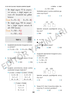 10 VE 100 İLE KISA YOLDAN ÇARPMA İŞLEMİ 3. ÜNİTE – 5. TEST
