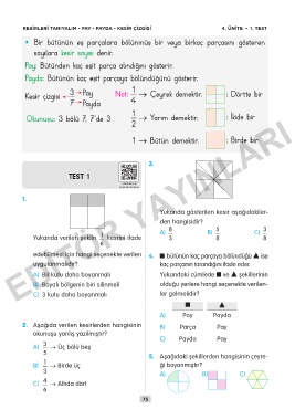 KESİRLERİ TANIYALIM - PAY - PAYDA - KESİR ÇİZGİSİ 4. ÜNİTE – 1. TEST