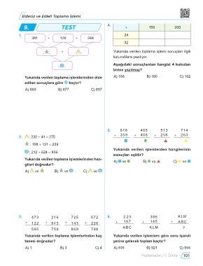 Yukarıda verilen toplama işlemlerinden han- A) ve B) ve C) ve