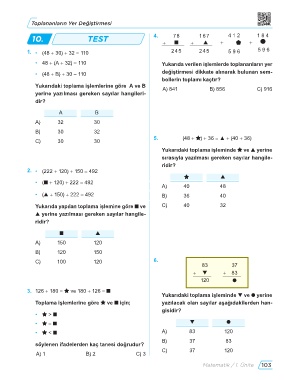 Toplama işlemlerine göre ve ■ için; yazılacak olan sayılar aşağıdakilerden han-
