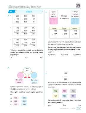 Çıkarma İşleminde Sonucu Tahmin Etme