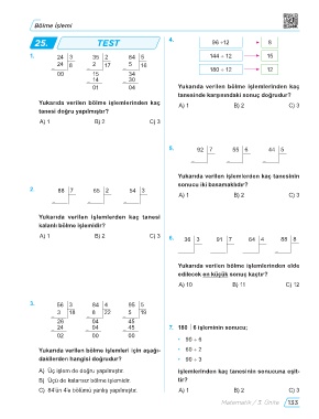 Yukarıda verilen bölme işlemlerinden kaç A) 1 B) 2 C) 3