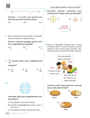 8. Selvi bir pideyi 6 eş parçaya böldü. Eş parçalar-