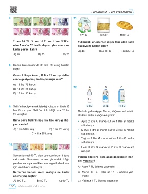 Buna göre Selin’in kaç lira kaç kuruşa ihti- • Ayşe 2 litre A marka süt ve 1 litre B marka