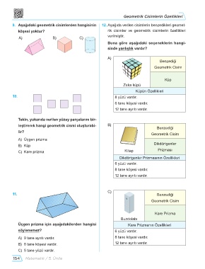 9. Aşağıdaki geometrik cisimlerden hangisinin 12. Aşağıda verilen cisimlerin benzedikleri geomet-