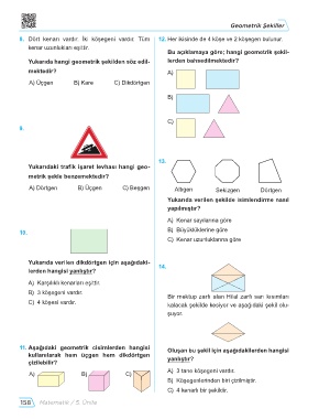 C) 4 köşesi vardır. kalacak şekilde kesiyor ve aşağıdaki şekil olu-