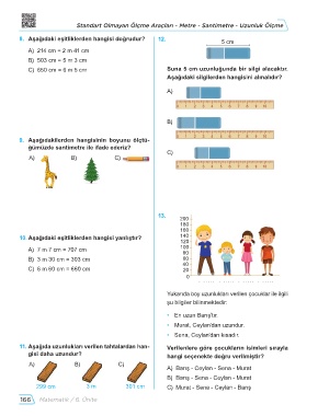 8. Aşağıdaki eşitliklerden hangisi doğrudur? 12. 5 cm