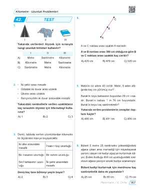2. • Iki şehir arası mesafe 5. Metin’in bir adımı 43 cm’dir. Metin, 8 adım attı-