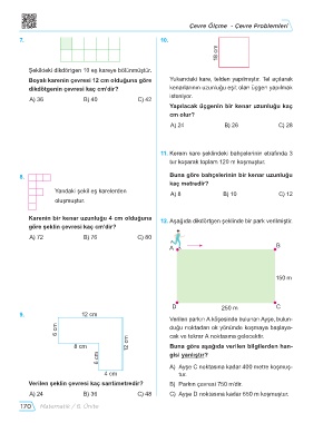Karenin bir kenar uzunluğu 4 cm olduğuna 12. Aşağıda dikdörtgen şeklinde bir park verilmiştir.