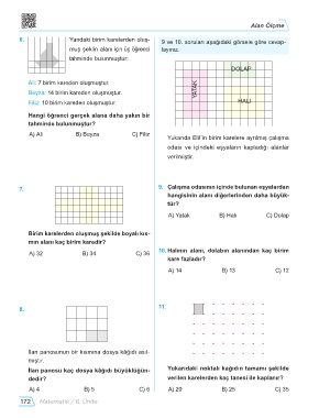 6. Yandaki birim karelerden oluş- 9 ve 10. soruları aşağıdaki görsele göre cevap-
