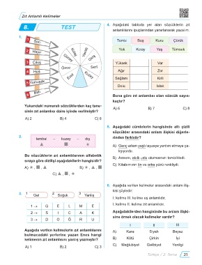 8. TEST 4. Aşağıdaki tabloda yer alan sözcüklerin zıt