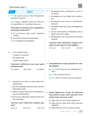 1. TEST 4. 1 Arkadaşlarımızla selamlaşmak olumlu bir
