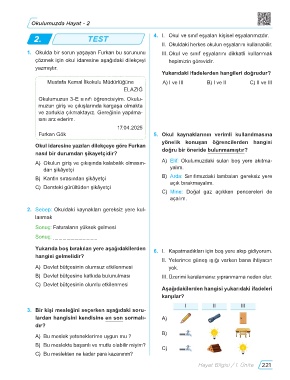 Page 221 - 3. Sınıf Süreç Odaklı Tüm Dersler Soru Bankası