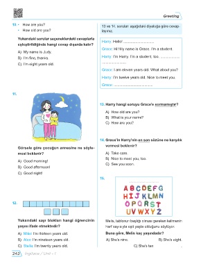 10. • How are you? 13 ve 14. soruları aşağıdaki diyaloğa göre cevap-