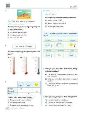 Verilen görsele göre diyalog hangi seçenek C) Is it rainy in Rize today