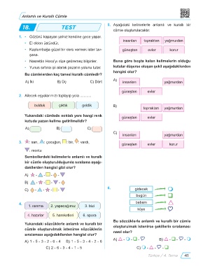 18. TEST 5. Aşağıdaki kelimelerle anlamlı ve kurallı bir