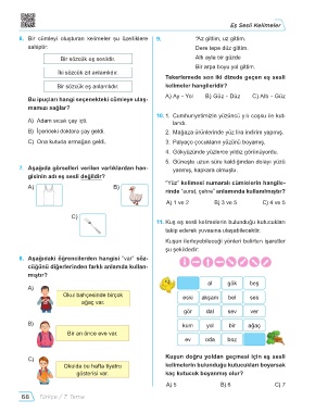 6. Bir cümleyi oluşturan kelimeler şu özelliklere 9. “Az gittim, uz gittim.