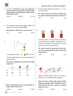 10. Birler basamağında 9 olan üç basamaklı en basamağında bulunan sayının basamak