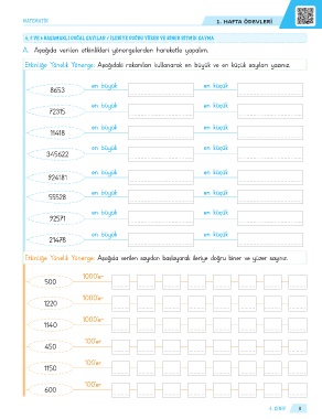 Etkinliğe Yönelik Yönerge: Aşağıdaki rakamları kullanarak en büyük ve en küçük sayıları yazınız.