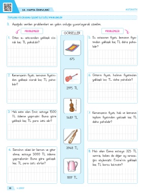 3. Halı satın alan Emir, satıcıya 1500 7. Kemençenin fiyatı, halı ve kemanın