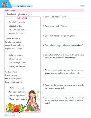 Diğerinde erikler. 2. Şiirin konusu nedir? Yazalım.
