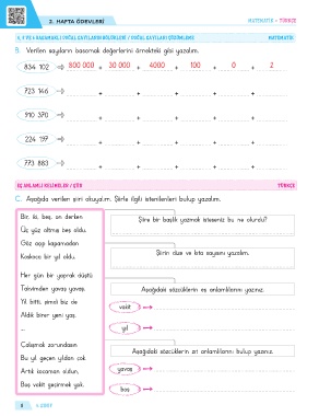Page 8 - 4. Sınıf Föy Föy Hafta Sonu Ödevleri