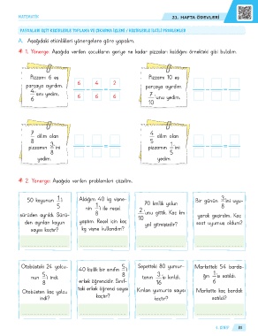 PAYDALARI EŞİT KESİRLERLE TOPLAMA VE ÇIKARMA İŞLEMİ / KESİRLERLE İLGİLİ PROBLEMLER
