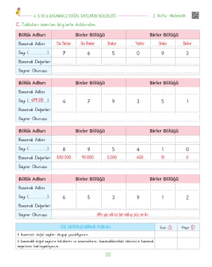 6 basamaklı doğal sayıların bölüklerini ve basamaklarını, basamaklarındaki rakamların basamak