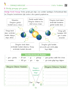 leri, Dünya’nın hareketlerinden ilgili olanların altına yazarak gruplandırınız.