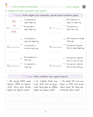 DOĞAL SAYILARLA TOPLAMA İŞLEMİ 4. Hafta - Matematik