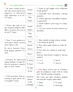 1. Bir insanın, kendisini karşısın- Sempati 6. Empati ile ilgili aşağıda verilen ifadelerden