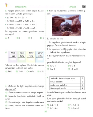 5. Aşağıda çözümlemesi verilen sayılar buluna- 8. Kum taşı kayaçlarının görünümü şekildeki gi-