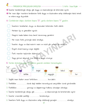 FARKINDAYIM, FARKLILIKLARA SAYGILIYIM 5. Hafta - Sosyal Bilgiler