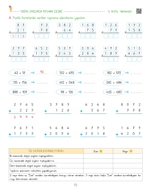 DOĞAL SAYILARDA TOPLAMA İŞLEMİ 5. Hafta - Matematik