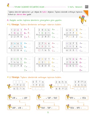 TOPLAMA İŞLEMİNDE VERİLMEYENİ BULMA 5. Hafta - Matematik