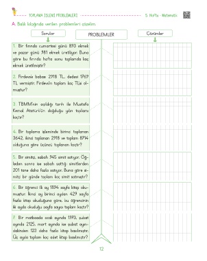 TOPLAMA İŞLEMİ PROBLEMLERİ 5. Hafta - Matematik