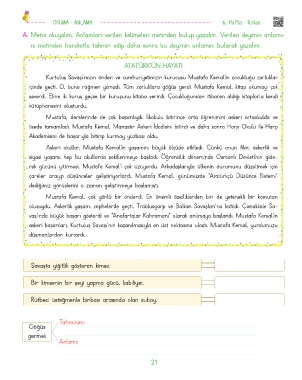 A. Metni okuyalım. Anlamları verilen kelimeleri metinden bulup yazalım. Verilen deyimin anlamı-