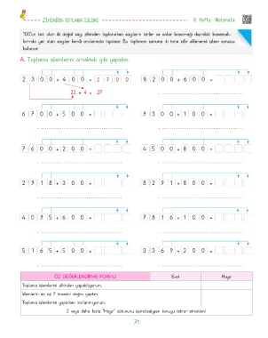 ZİHİNDEN TOPLAMA İŞLEMİ 8. Hafta - Matematik