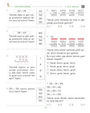 ÇOKLU DEĞERLENDİRME 8. Hafta - Matematik