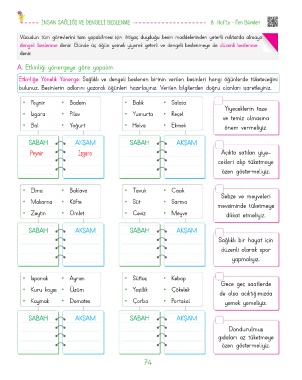 bulunuz. Besinlerin adlarını yazarak öğünleri hazırlayınız. Verilen bilgilerden doğru olanları işaretleyiniz.