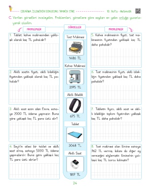3. Akıllı saat satın alan Emre, satıcı- 7. Tabletin fiyatı, akıllı saat ve akıl-