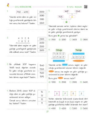 ÇOKLU DEĞERLENDİRME 10. Hafta - Matematik