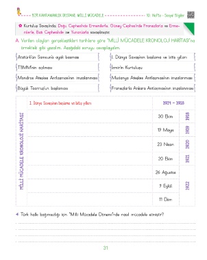 A. Verilen olayları gerçekleştikleri tarihlere göre "MİLLİ MÜCADELE KRONOLOJİ HARİTASI"na