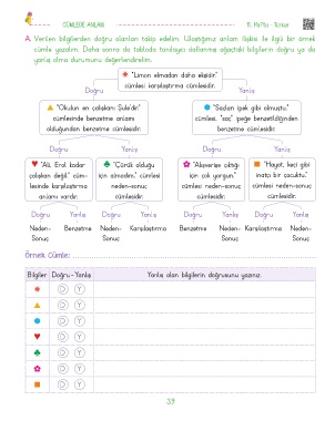 cümle yazalım. Daha sonra da tabloda tanılayıcı dallanmış ağaçtaki bilgilerin doğru ya da