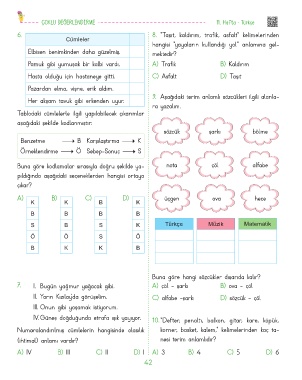 Page 43 - 4. Sınıf Hafta Hafta Biçimlendirici Değerlendirme Fasikül-3