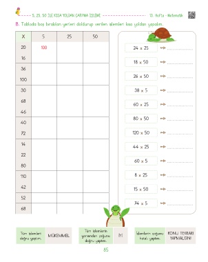 5, 25, 50 İLE KISA YOLDAN ÇARPMA İŞLEMİ 13. Hafta - Matematik